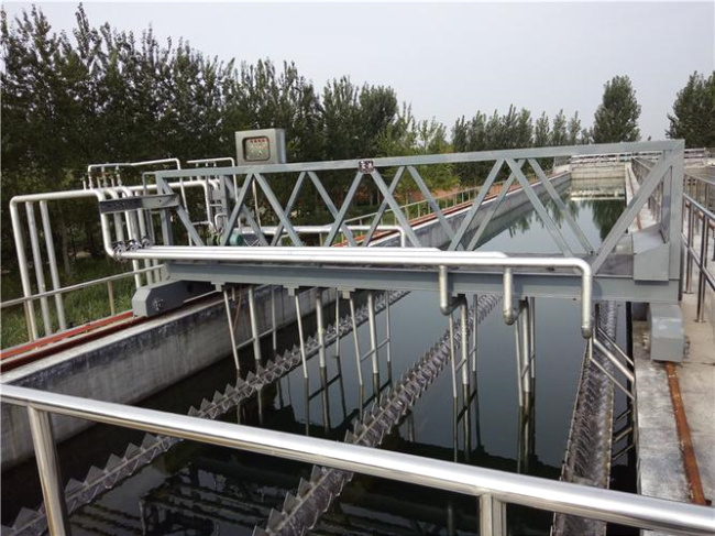 刮泥机,是一种将淤泥从河道里清理出来的一种机器,用于城市污水处理厂、自来水厂以及工业废水处理中直径较大的圆形沉淀池中,排除沉降在池底的污泥和撇除池面的浮渣。